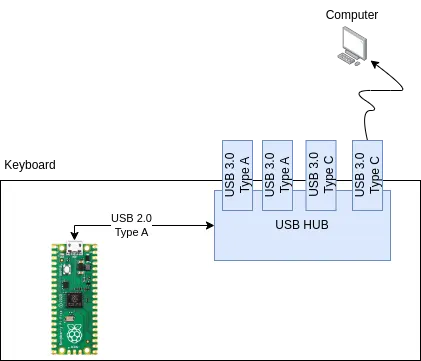 The embedded USB hub will offer the possibility to plug USB devices like a mouse wireless receiver, or a USB key. The Pico will internally by wired as a permanent device of the HUB.